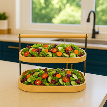 2-Tier Bamboo Salad & Snack Serving Stand