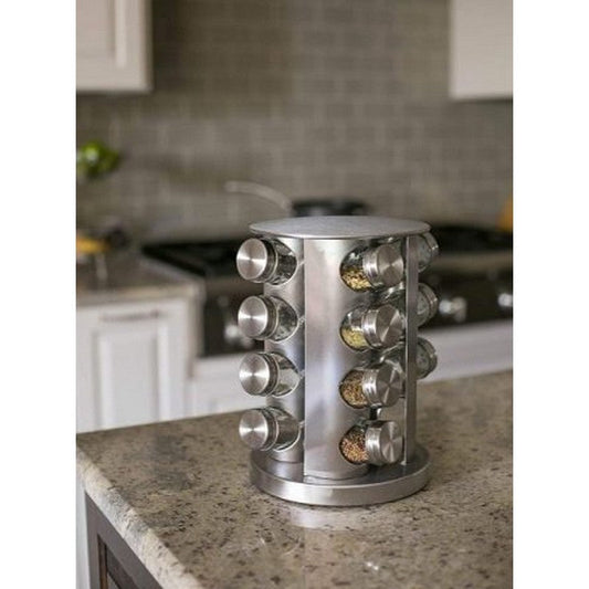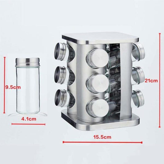 Stainless Steel 16 Pcs Jars Rotating Spice Jar Rack Set Seasoning Stand Holder Condiment Salt Pepper Shaker Kitchen Tools
