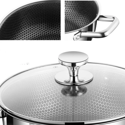 Stainless Steel Soup Pot, Wok, Non-Stick Pan With Lid, Honeycomb Hot Pot For Home, Induction Cooker, Gas Stove, Kitchen Cookware