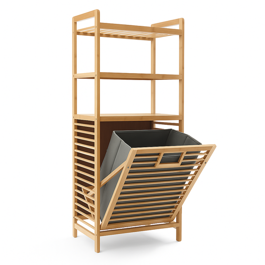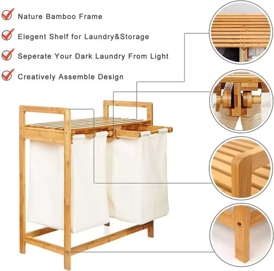 Bamboo Laundry Hamper With Dual Compartments - Grey