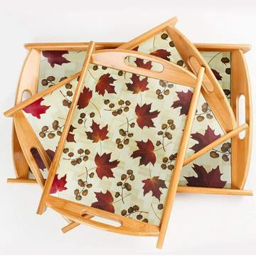 Premium Quality Set of 3 Bamboo Wooden Printed Trays