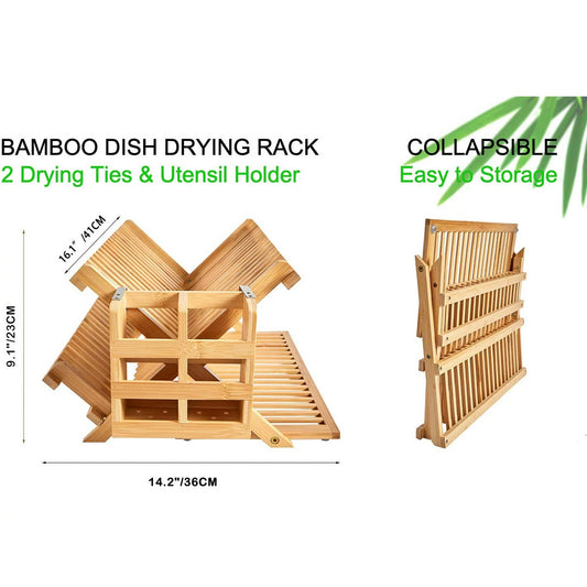 Foldable Bamboo Dish Drying Rack Holder - Wooden Flatware Dish Rack