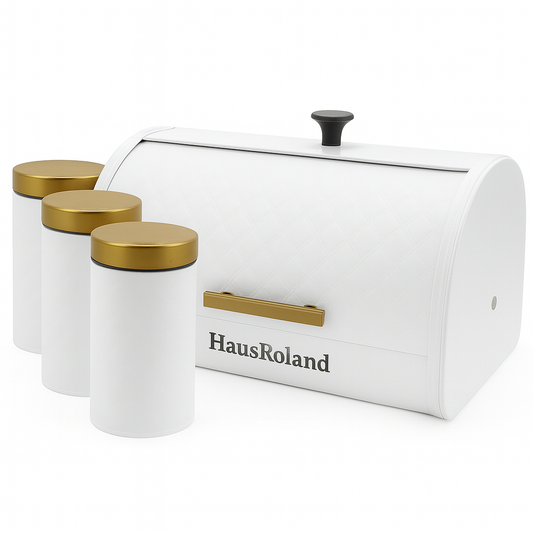 HausRoland Deluxe Bread Bin & Canister Combo Set - White