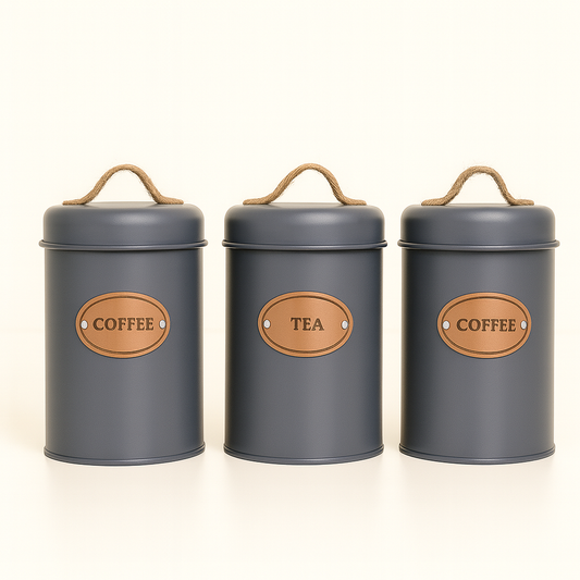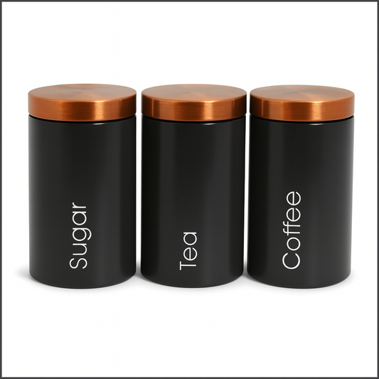 3 Pcs Matte Black Metal Kitchen Storage Canisters